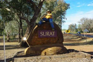 Leaving the “Ridge” we travelled into Queensland via Hebel, Dirranbandi (great bakery), St George and then to Surat. It was again noticeable how the countryside got drier and we again saw more kangaroos & emus. At Surat we camped at the Surat Fishing & Restocking Club Park. It was a great free camp.