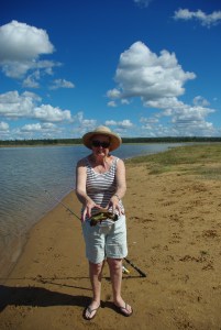 Leaving the Emerald, we travelled a short distance on the Gregory Highway to Capella then turned off at Capella & went through Tieri & on to German Creek near Middlemount where we free camped at Bundoora Dam for 3 nights. We spent our time at the dam with two other Tasmanian couples whom are also members of the Clarence Licenced Anglers Club. The weather was kind & the company was great. We fished with lures & baits as well as setting opera house nets for Red Claw crayfish. Red Claw is a small yabby that is vegetarian. We caught few Red Claw in the nets along with sleepy cod, eel tailed catfish, bony bream & shrimps. Numerous turtles were caught on bait as well as 2 Saratoga on the day we had left.