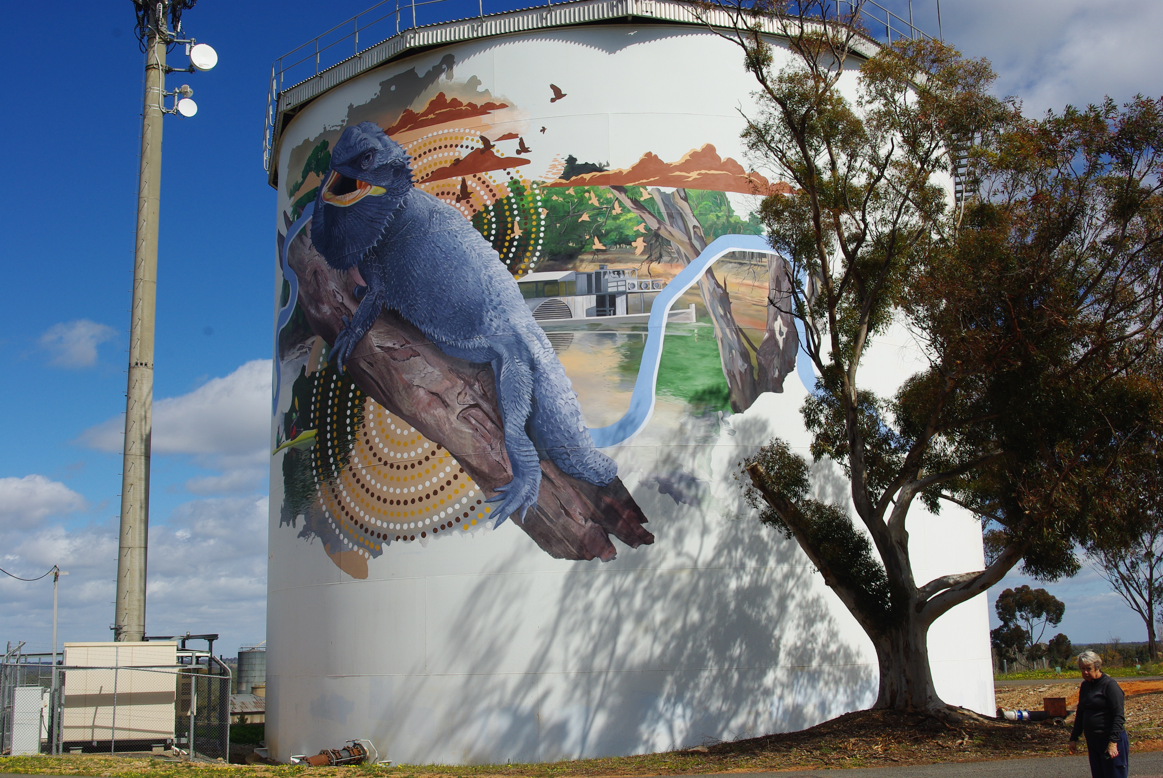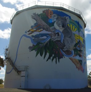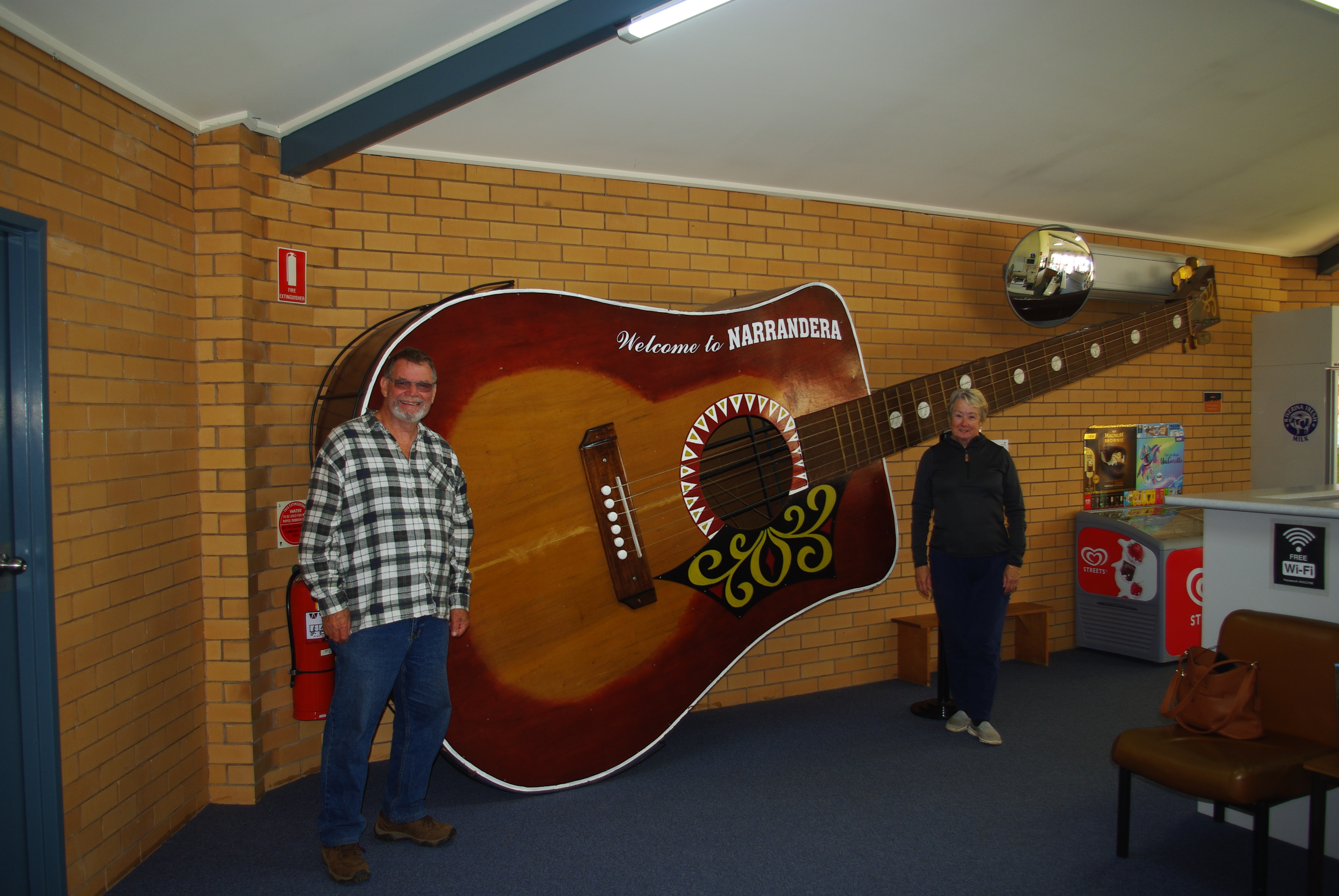 We are now moving south at a quite rapid rate {for us) to catch the Spirit of Tasmania so we left Trundle on the Sunday & travelled through Forbes and onto the Newell Highway and down to West Wyalong through to Narrandera where we free camped at Brewery Flat for two nights. Whilst at Narrandera we inspected some tank art & visited a World War ll Air Training Museum. We also caught up with John & Jenny Wagner for a night. John & Jenny have a mobile home & have recently sold their farm and are looking forward to more trips away. Whilst at Brewery Flat we saw a koala.