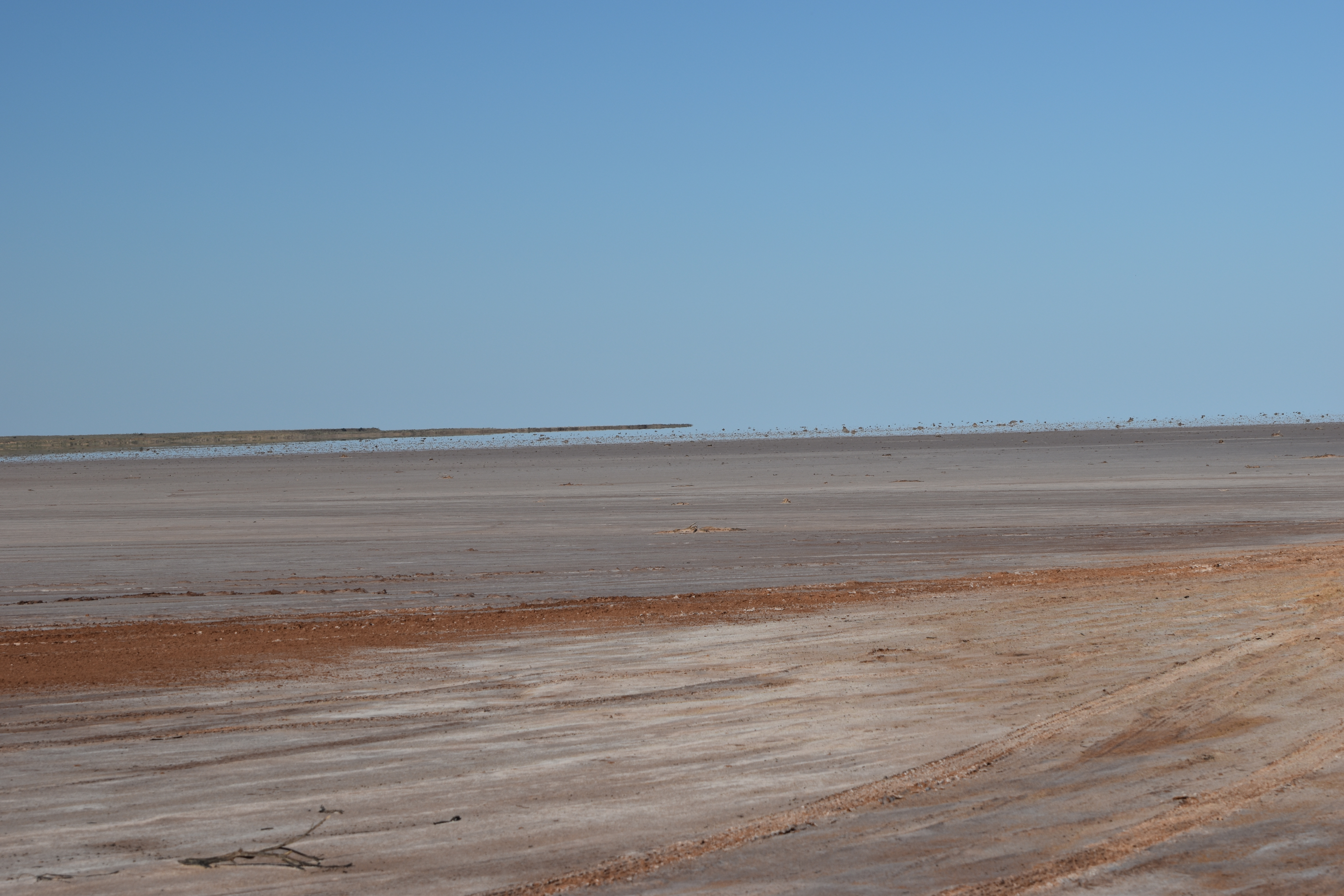 After setting up camp ($8 a night with toilets, showers, playground, and dump point) we travelled out of town to Lake Torrens. Lake Torrens is usually a dry salt flat with patches of seasonal water. Thunderstorms occasionally provide a small amount of water in the lake and when this occurs the area attracts a variety of birdlife. It was about 20 kilometres of slow going to get there but we were able to do the whole track in 2wd.