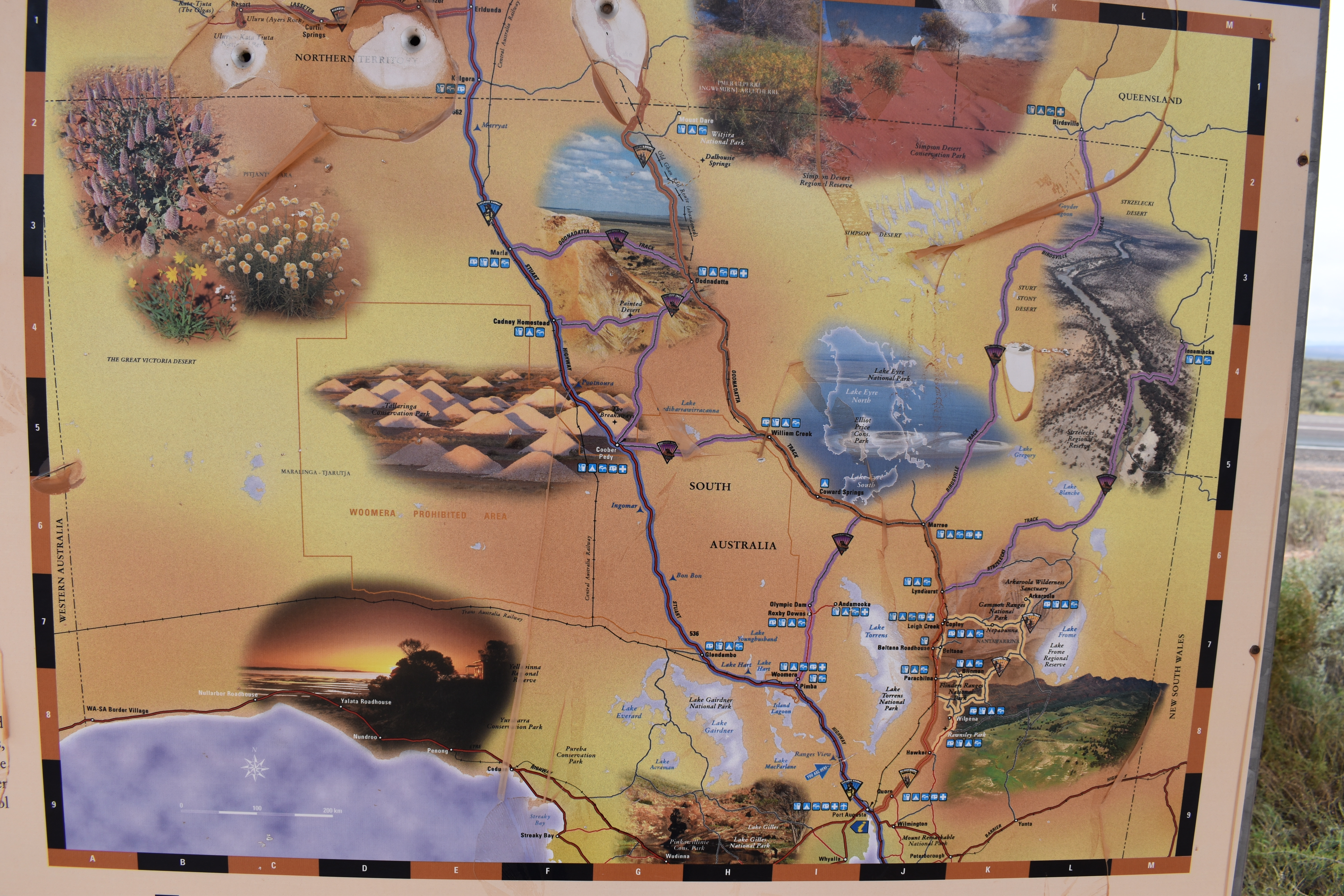 We hooked up the caravan again and went back down the road to visit the Olympic Dam Mine and then Roxby Downs. At Roxby Downs we filled up with water and had lunch. We purchased some blade fuses and Stephen replaced a faulty fuse so now everything is back to normal with the caravan electrics.