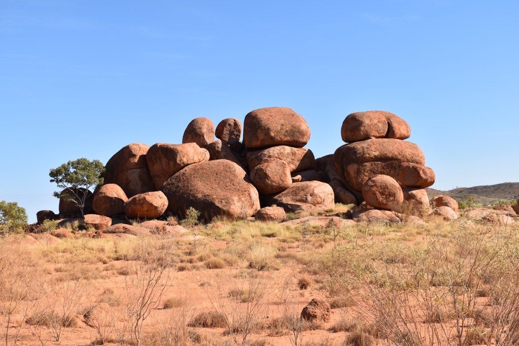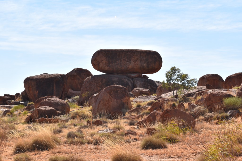 The marbles balance precariously atop each other in mind bending formations. The granite boulders glow a stunning red in the early morning and as the sun sets each day. Scientists believe that the boulders were part of a large formation that cracked, and that natural erosion over thousands of years rounded their edges, resulting in their spherical shape today.