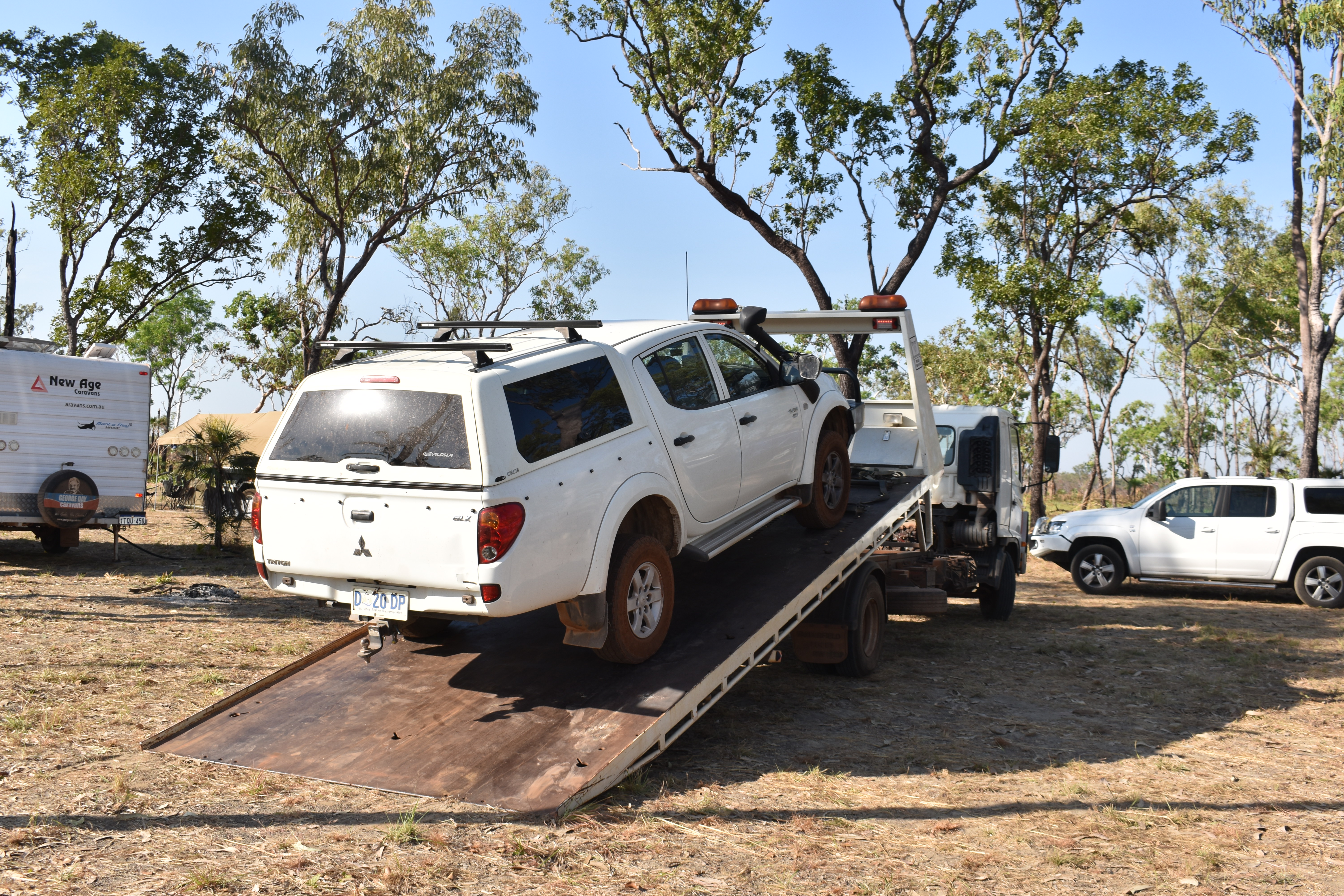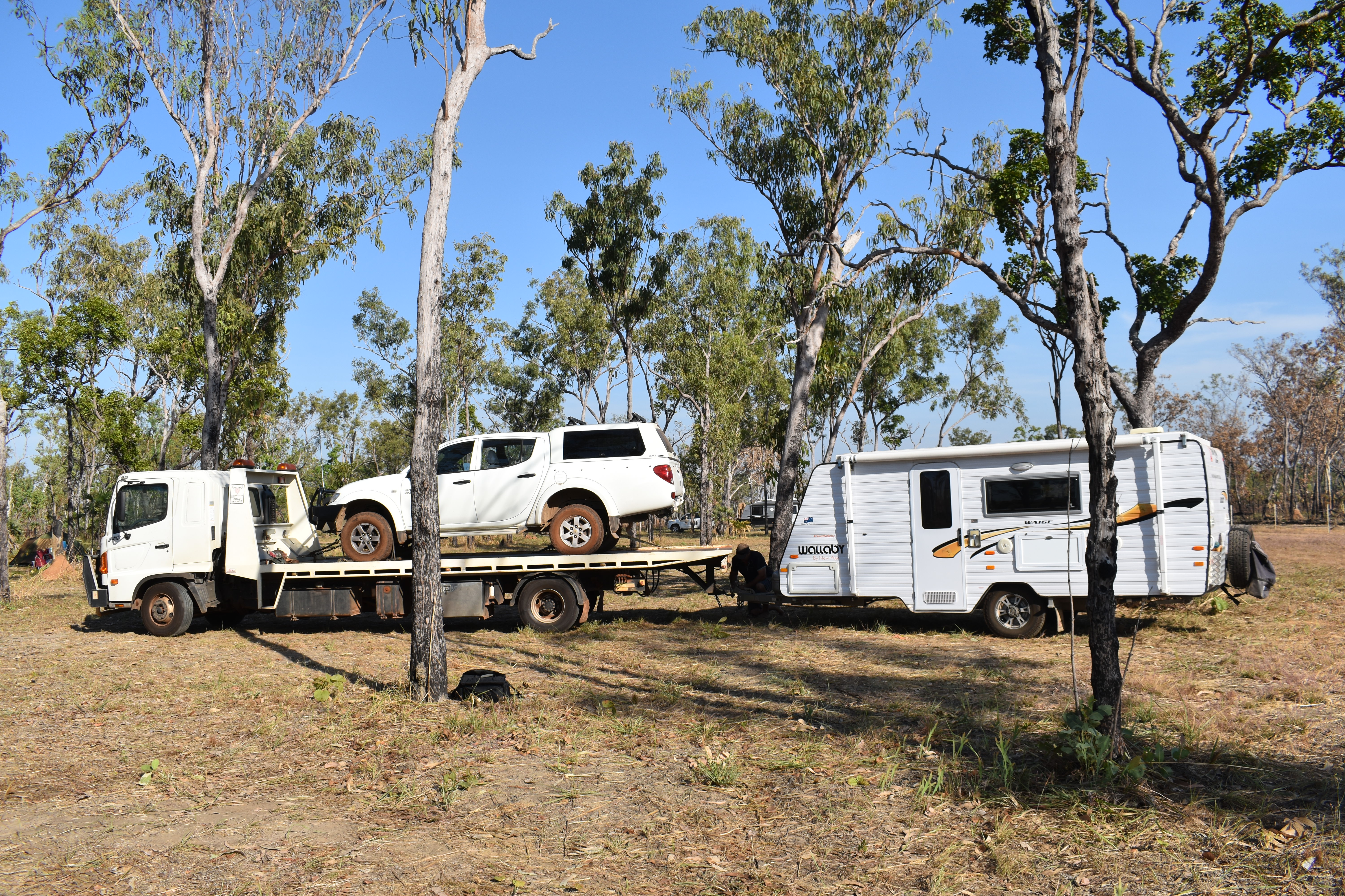 Toward the end of our first day in the park we had our way back to the township of Batchelor when we experienced engine trouble with our Mitsubishi Triton Dual Cab. the car was undriveable. Unfortunately, the engine trouble was beyond the capability of the mechanic at Adelaide River so we have had to have our car and caravan taken to Darwin. The car is at the Darwin Mitsubishi dealer and we are hopeful they can look at it next week!
