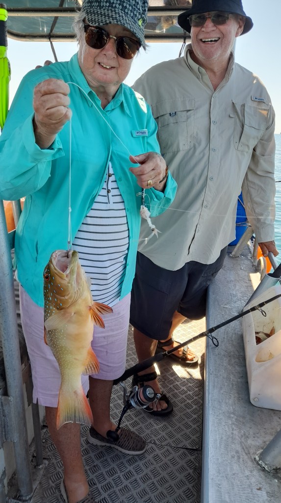 We also have done a half day fishing charter on Darwin Harbour. It was enjoyable because we caught a variety of fish species. We caught a coral trout, striped snapper, bream, cod bat fish and Moses Perch. Cheryl caught the Coral Trout which was the biggest fish boated. Stephen caught the most fish on the boat.