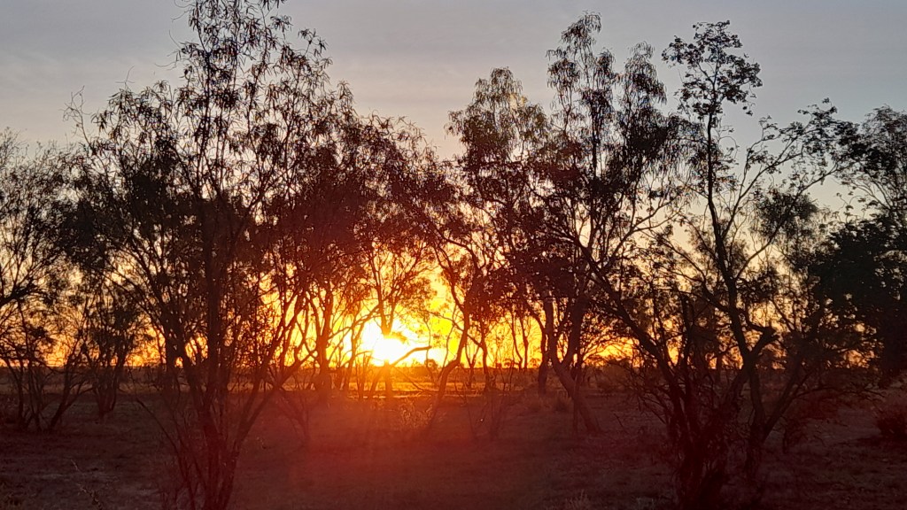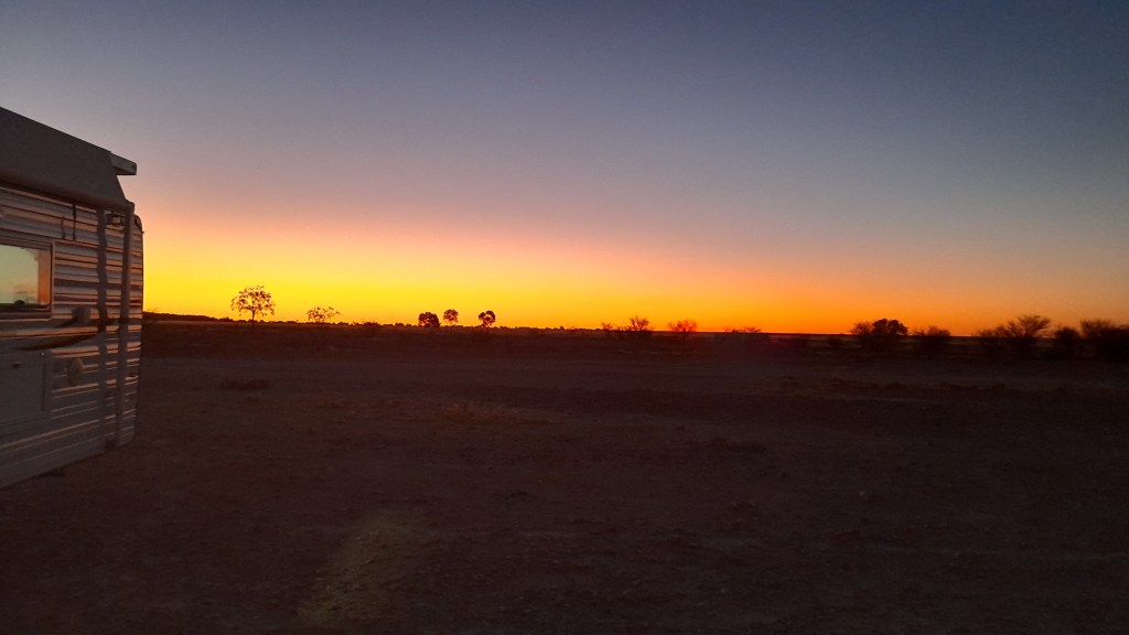 Hi, we left the Isa and travelled east to Cloncurry then down toward Winton. We free camped at Dinosaur Creek with another couple of vans and experienced a fabulous sunset.