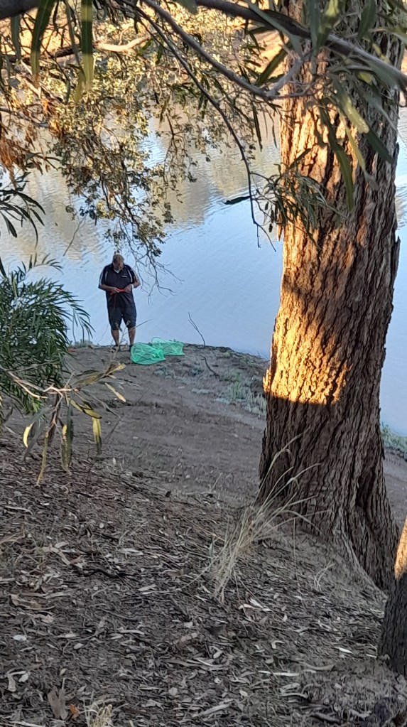 Stephen setting yabby traps at our camp