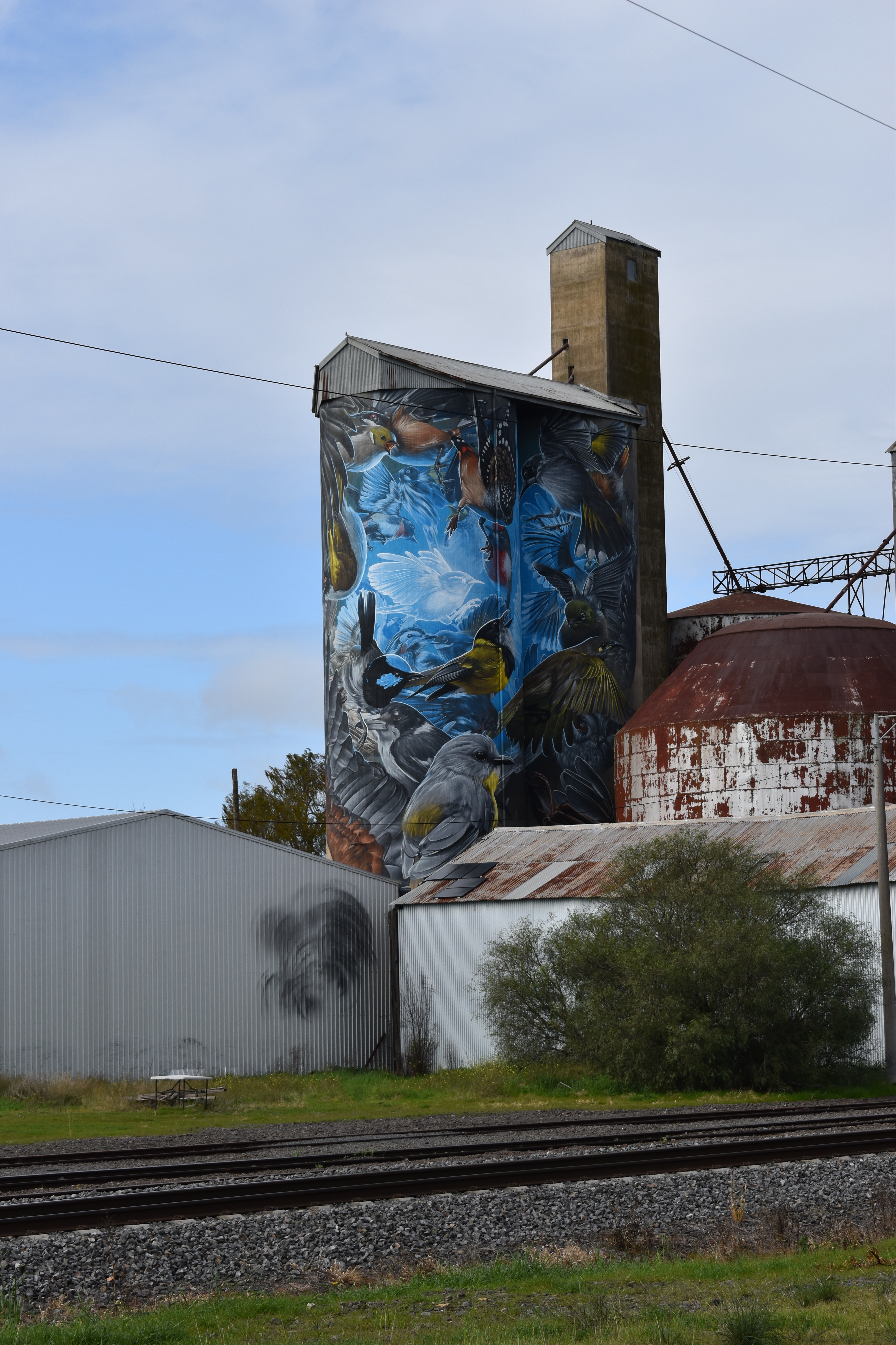It was constructed using over 560 natural mountain ash poles and is 270m in length. Soaring to 19m in height and a width of 60m, it gives the impression of a grand cathedral. For that reason it is often referred to as “The Cathedral of the Wimmera”. It used to hold an incredible 92,500 tonnes of grain and was closed in 1989 as no longer being economical. We also checked out some silo art.