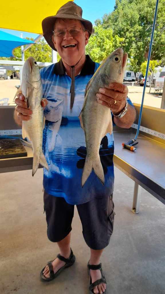 We love camping here as there is so much birdlife around the billabong. After two nights we moved onto Mount Isa. Mount Isa is a major mining town in western Queensland and our blog followers would be aware we have stayed there several times. We stocked up on provisions and did our washing before heading off toward Normanton and then Karumba. At Normanton, we enjoyed breakfast with Michael and Erica before they headed off to Croyden and beyond. It had been great travelling with them over the last 15 days. We had 5 nights at Karumba just relaxing and doing some fishing.